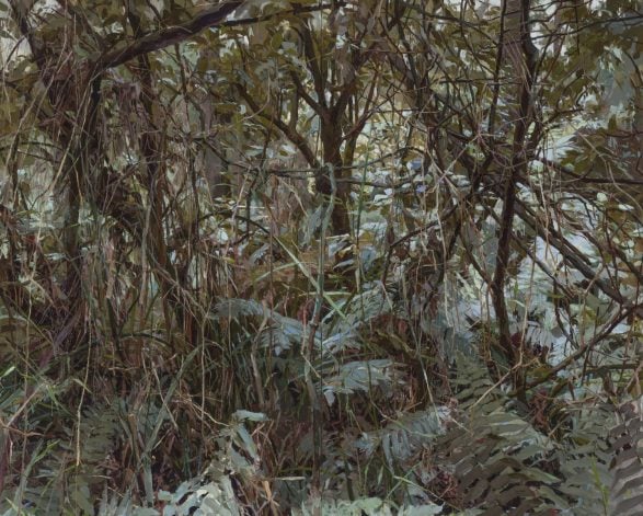 Based in a secluded corner of the dense damp, ferny bush of Corhanwarrabul/ Dandenong Ranges, Tonkin paints the landscape of her childhood – her ‘enchanted paradise’.